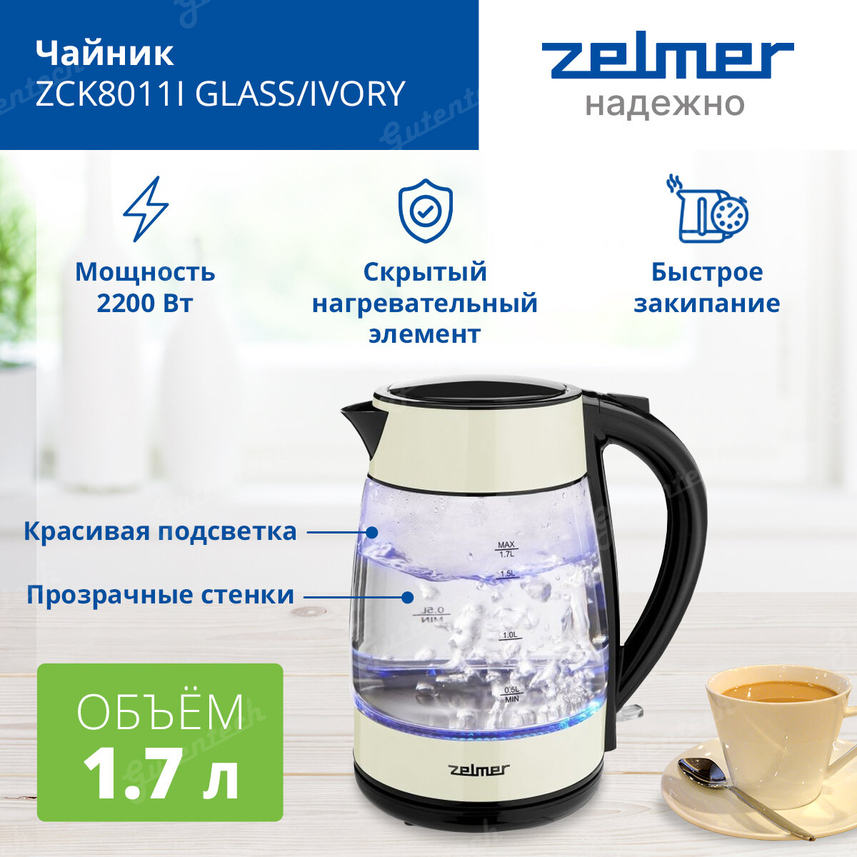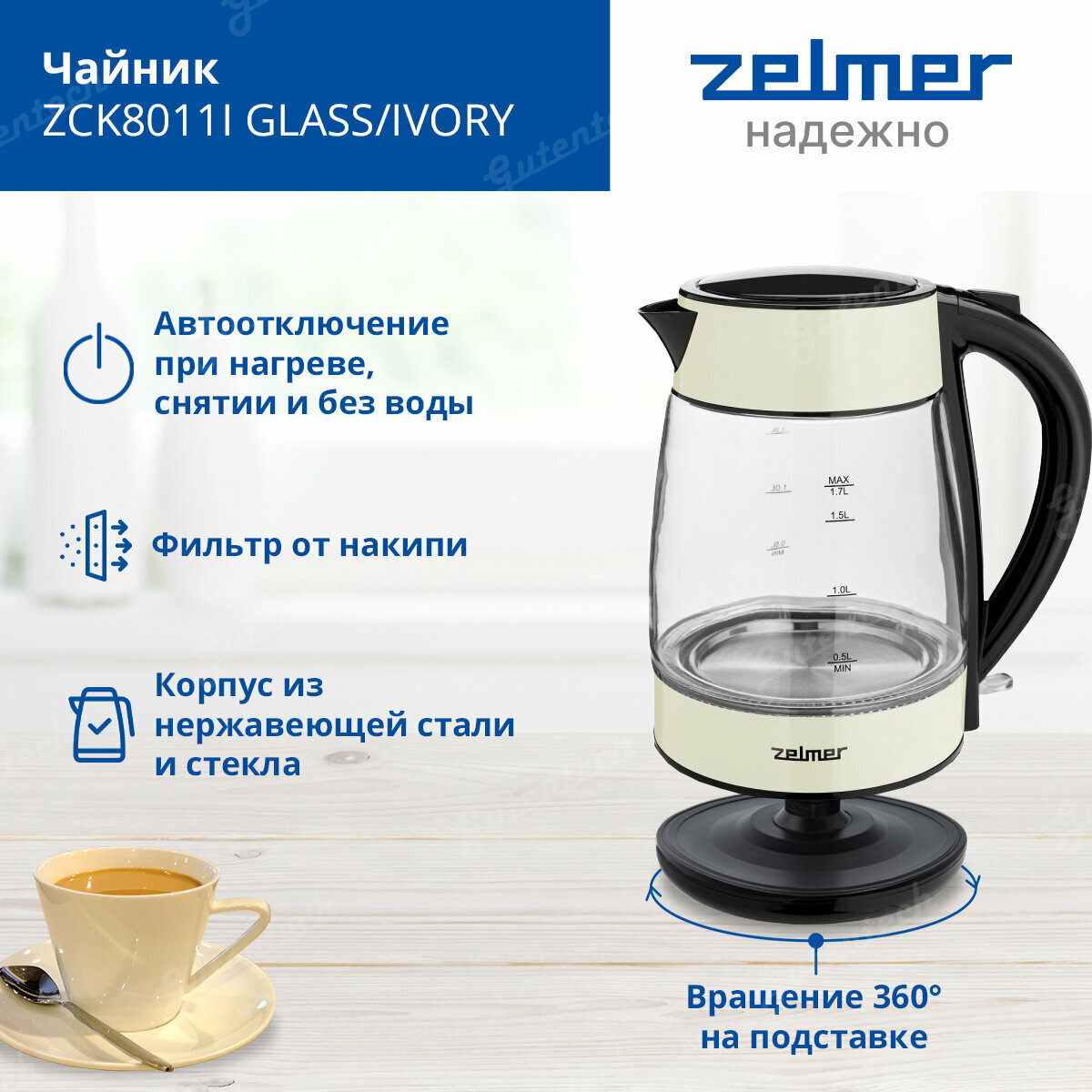Чайник ZCK8011I GLASS/IVORY ZELMER