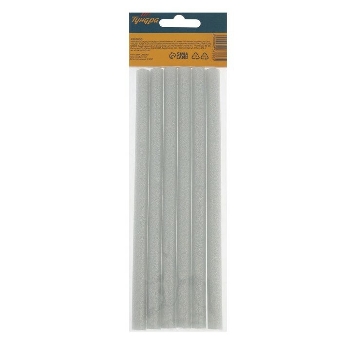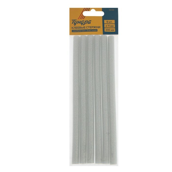 Купить Клеевые стержни тундра, 11 х 200 мм, серебристые с блестками, 6 шт.