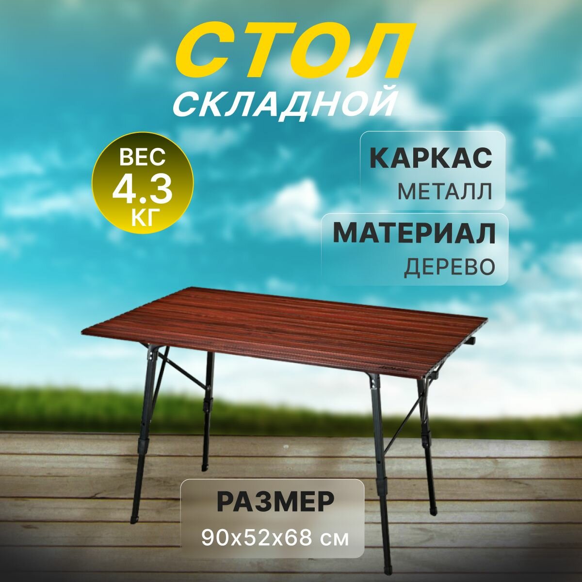 Стол туристический складной 120*55 черный реечный