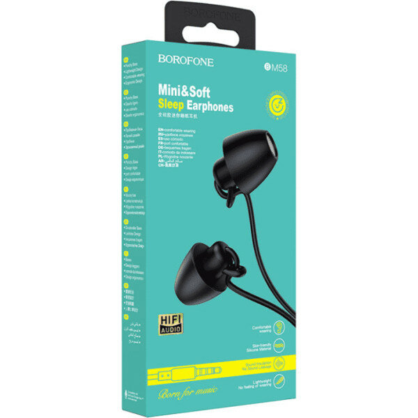 Наушники внутриканальные Borofone BM58, Sleep, микрофон, кнопка ответа, кабель 1.2м, цвет: чёрный