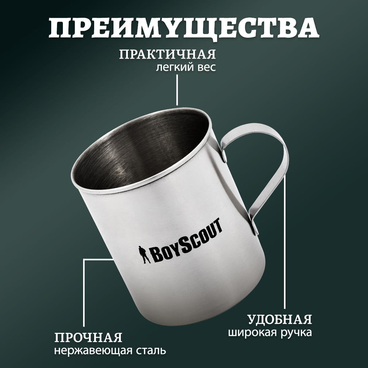 Кружка туристическая BOYSCOUT 400 мл нержавеющая сталь
