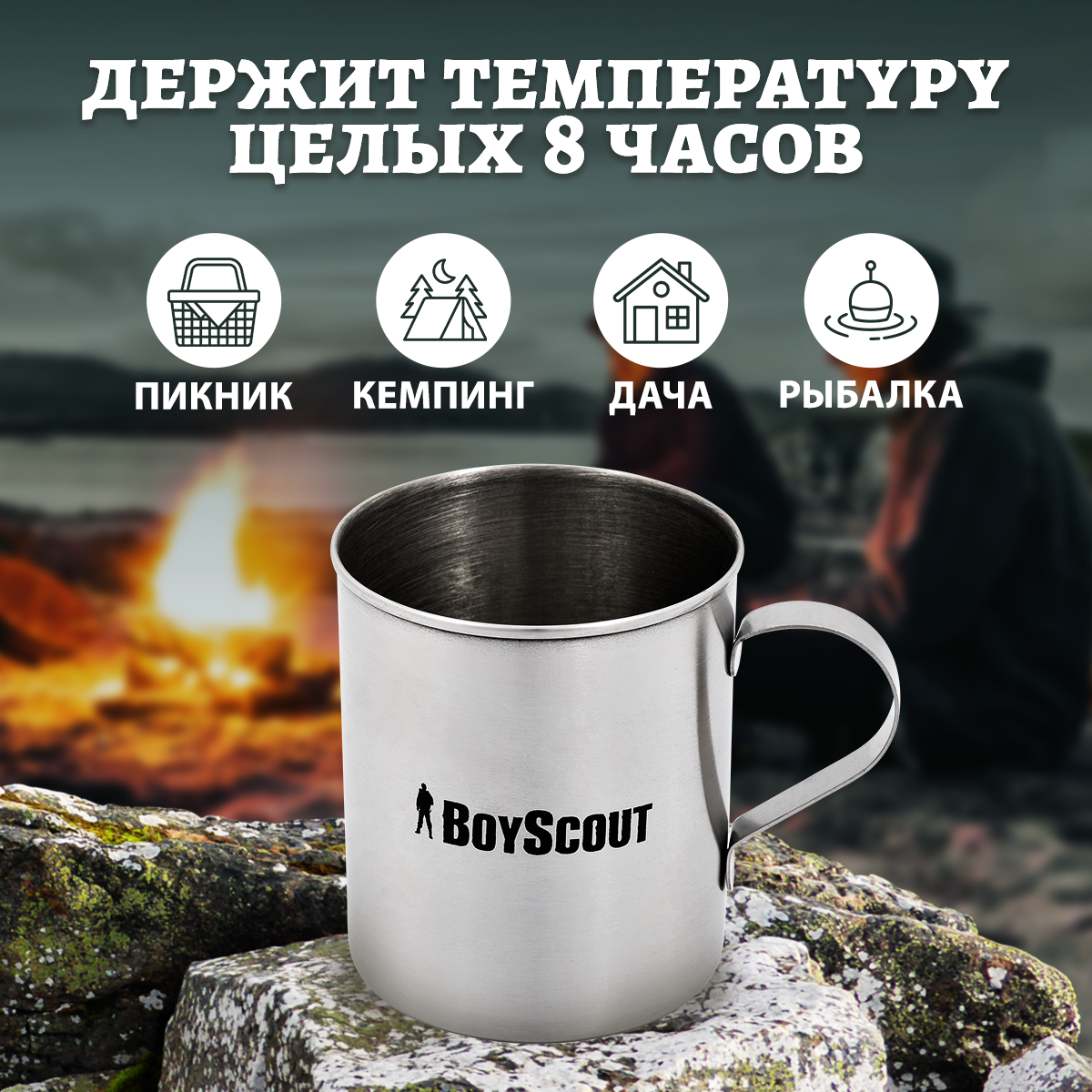 Купить Кружка туристическая 400 мл нержавеющая сталь BOYSCOUT /в поход/пикник