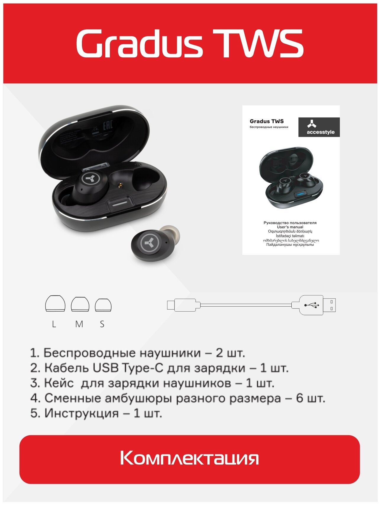 Гарнитура ACCESSTYLE Gradus TWS, Bluetooth, вкладыши, черный [gradus tws black]