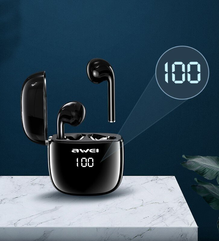 TWS гарнитура AWEI T28P BT 5.3, вкладыши, LED дисплей (черный)