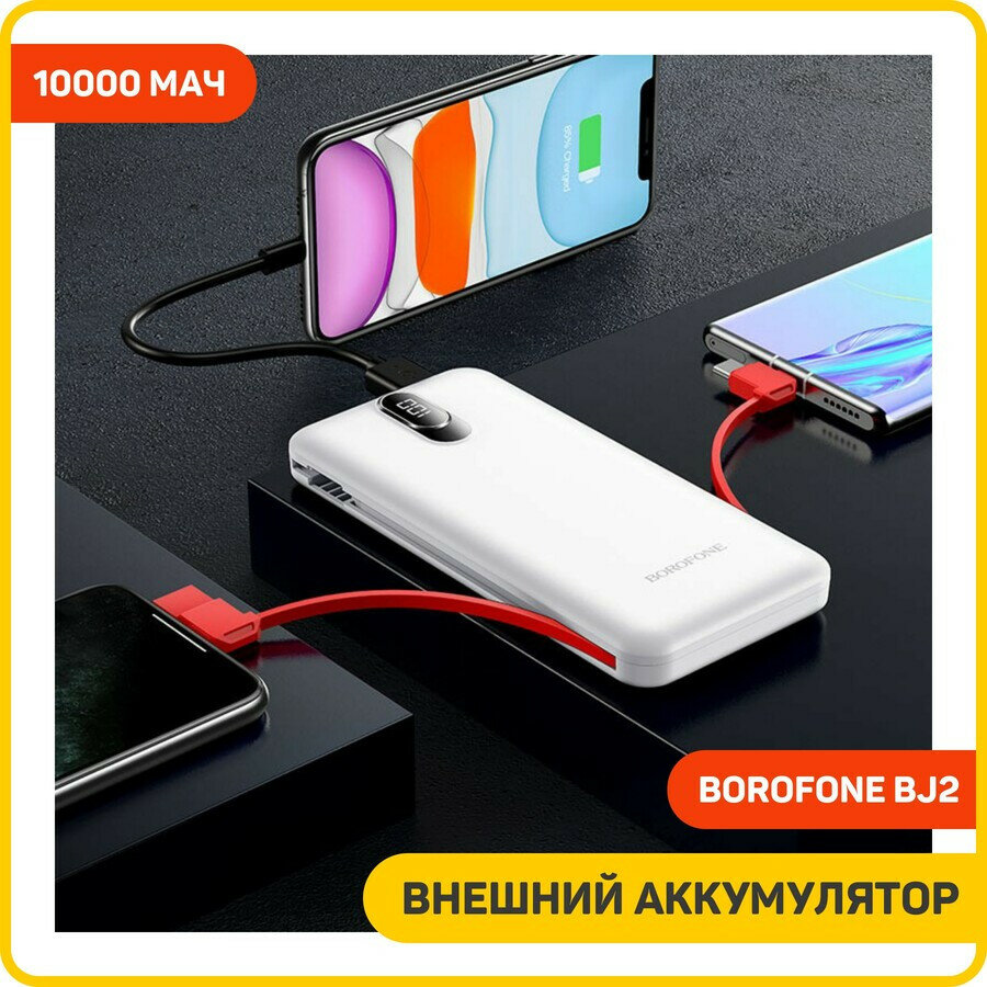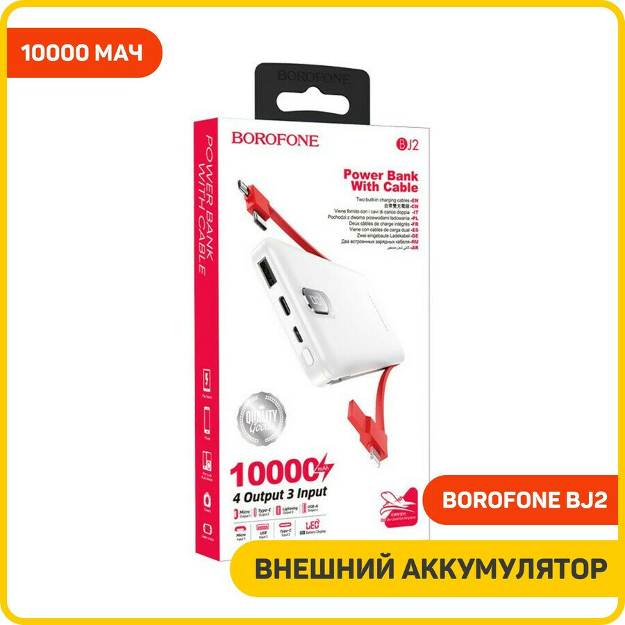 Портативный аккумулятор Borofone BJ2 Buena 10000mAh со встроенным кабелем ( кабель 4в1)