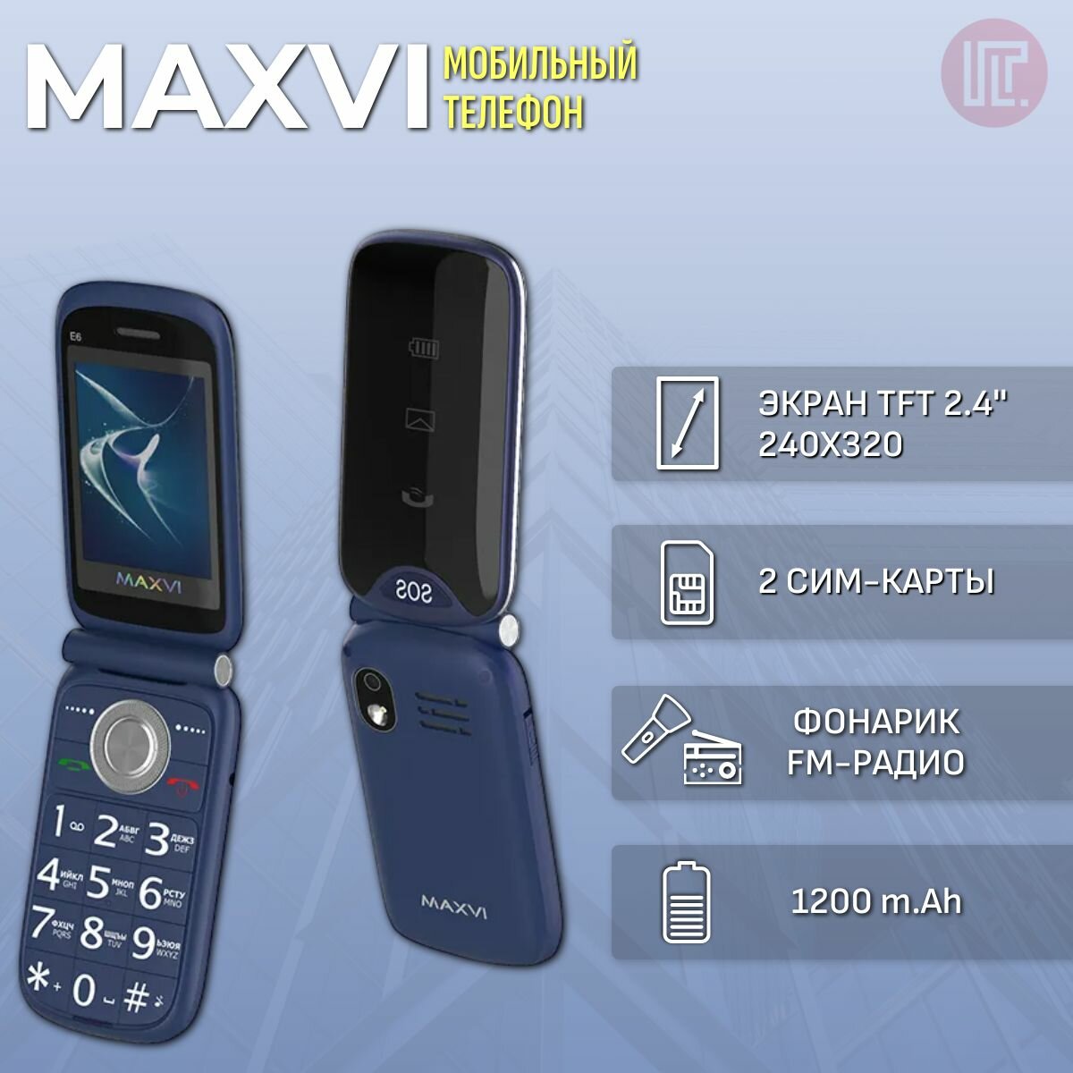 Телефон MAXVI E6, синий