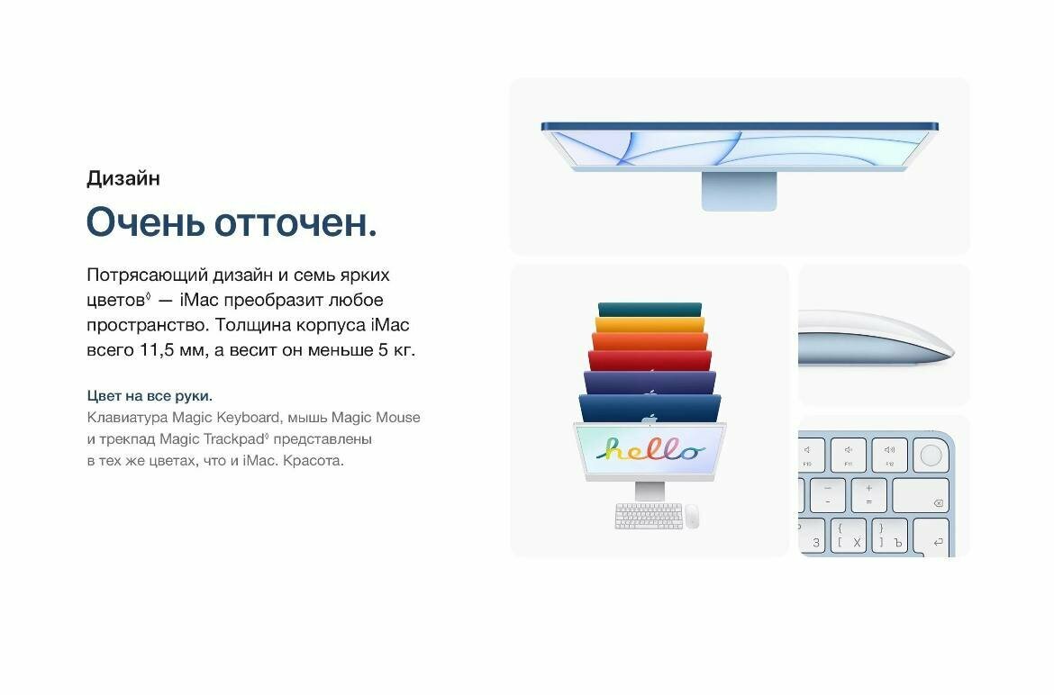 Моноблок Apple iMac 24" Retina 4,5K, (M1 8C CPU, 8C GPU), 8 ГБ, 512 ГБ SSD, синий