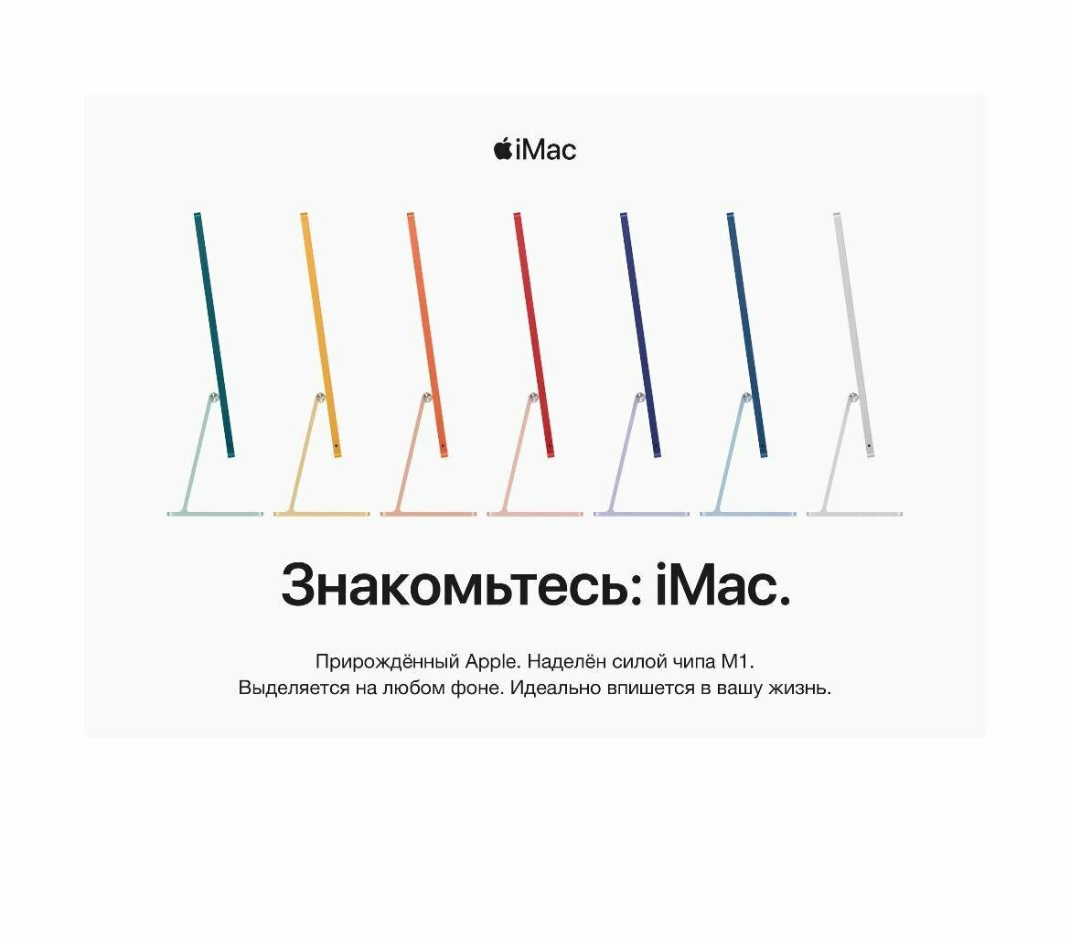 24" Моноблок Apple iMac 24" 2021 г. MGPD3, 4480x2520, Apple M1 2.064 ГГц, RAM 8 ГБ, SSD 512 ГБ, Apple M1 8-Core, MacOS, серебристый