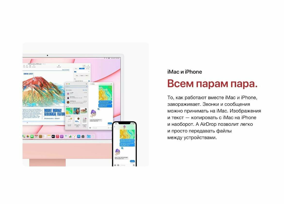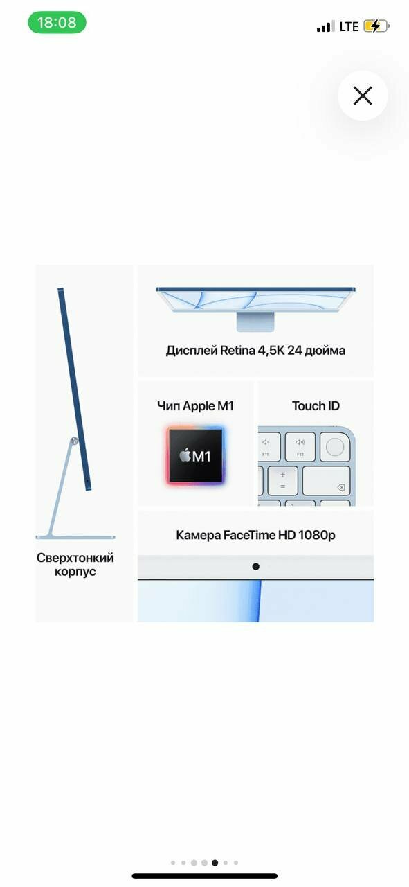 Выбор был между MacMini m1 + хороший монитор и этим iMac. Практичнее мак мини и хороший монитор, но аймак слишком хорош в деталях и это перевесило. Для работы важно брать модель с 8 процессорами, там 2 куллера, это поможет в сложных задачах лучше охлаждать процессор (в базовой модели могут быть ситуации когда сбрасывается частота) на домашних задачах это ок, но для работы важна полная мощность. Экран очень крутой, классная защита от бликов. Такого уровня экран только у сверх дорогих LG |