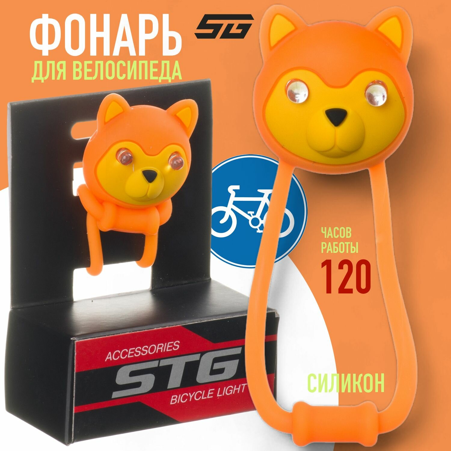 Фонарь велосипедный STG JY-267-P силикон, 10,5х8х4 см, оранжевый
