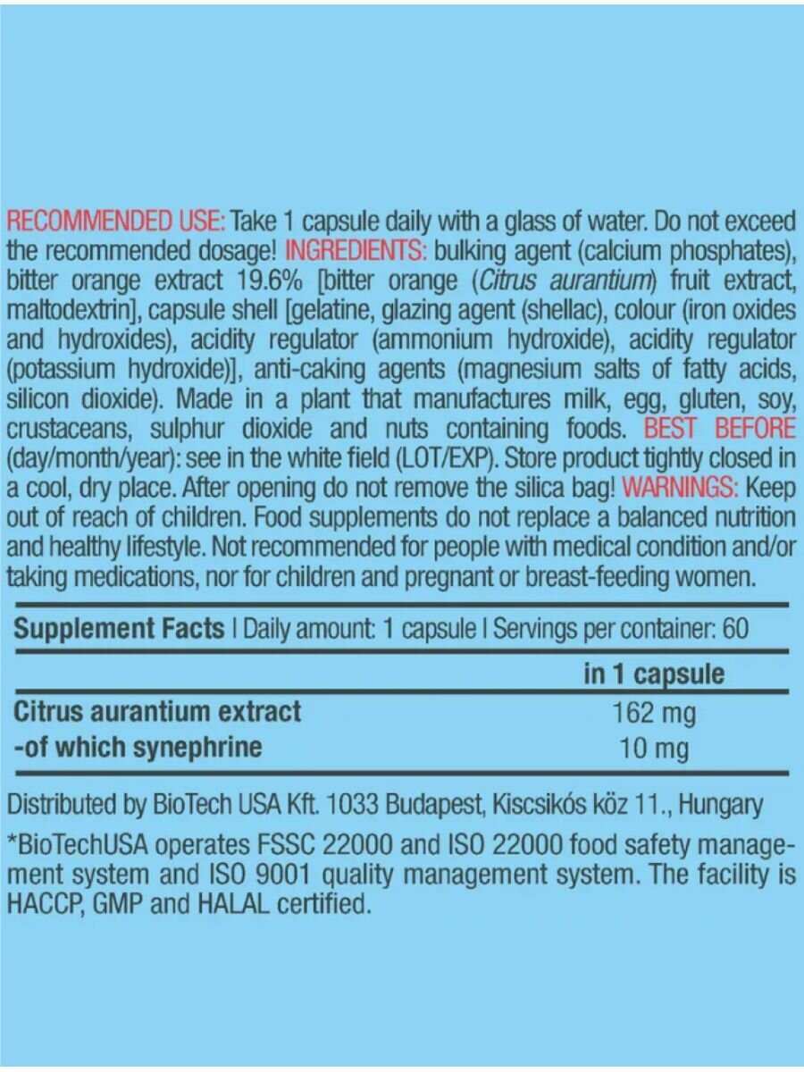 BioTechUSA жиросжигатель Synephrine, 60 шт.