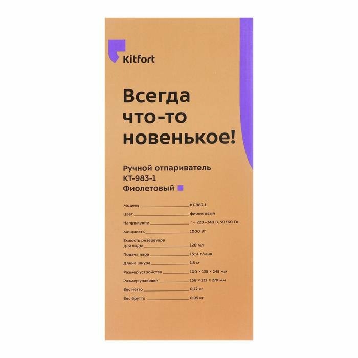 Отпариватели Kitfort Отпариватель Kitfort КТ-983-1, ручной, 1000 Вт, 120 мл, 4 г/мин, фиолетовый