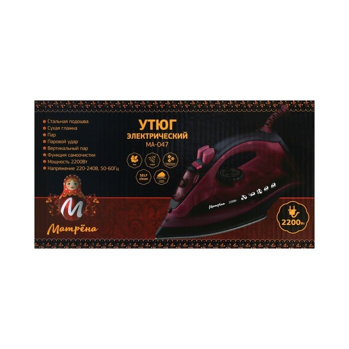 Купить Утюг Матрёна MA-047 вишневый (2200Вт, пар, спрей, пар.удар, самооч., стальная подошва)