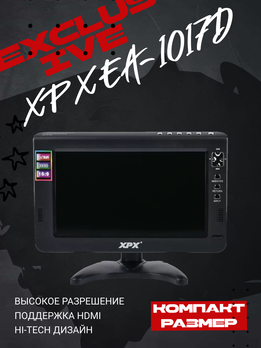 Автомобильный портативный телевизор С цифровым (DVB-T2) тюнером XPX EA-1017D интересное: