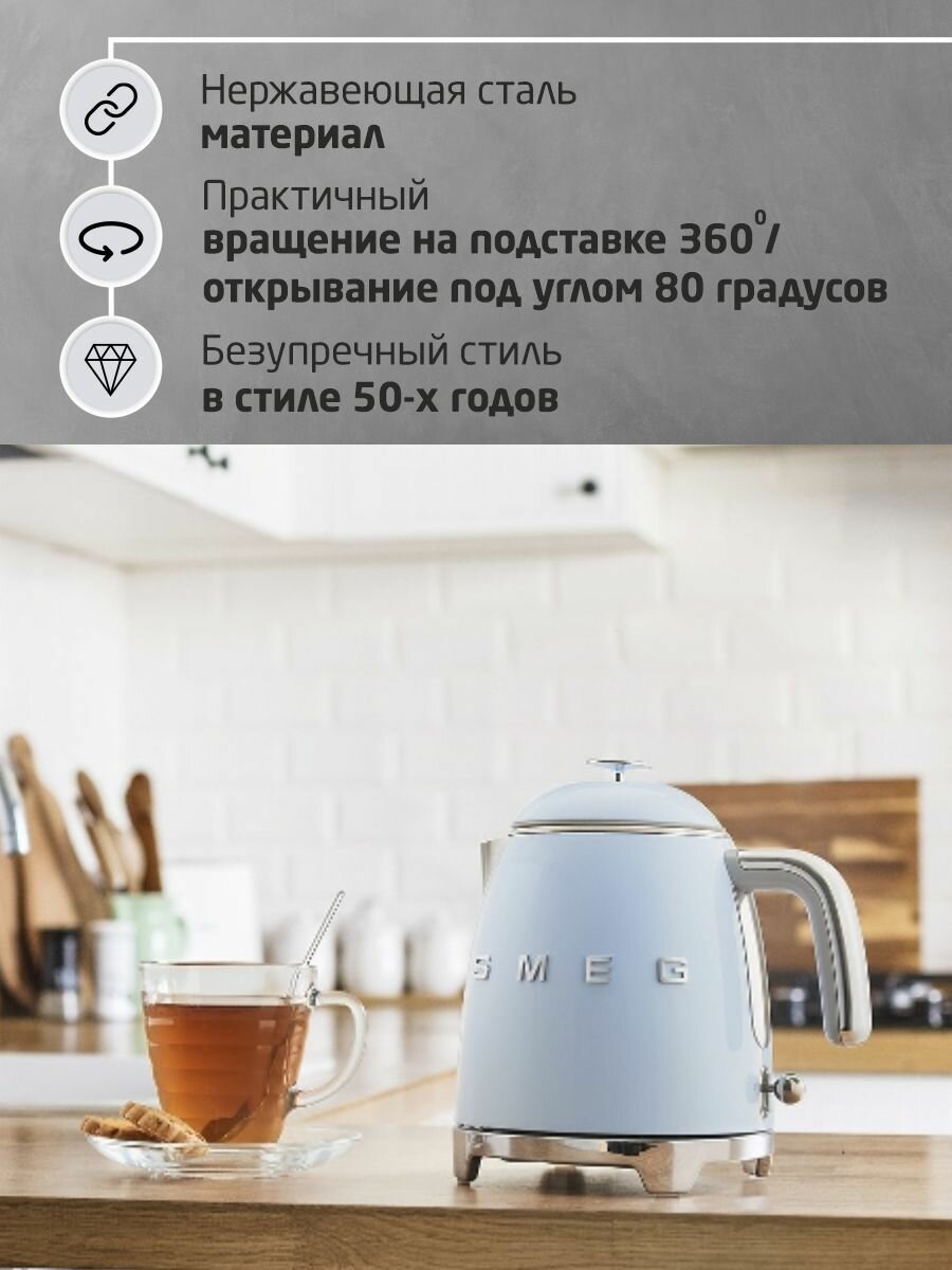 Чайники SMEG/ Мини чайник электрический, 0.8 л, пастельный голубой