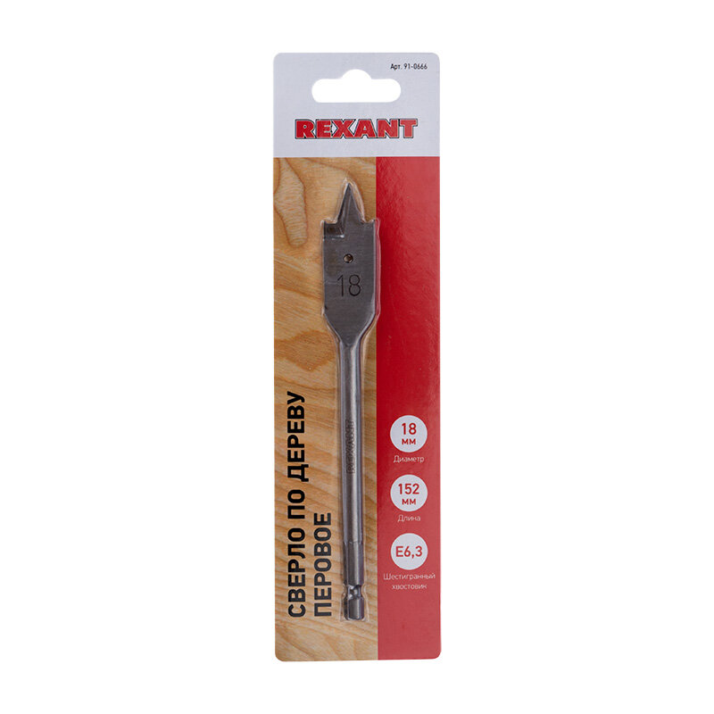 Сверло перовое по дереву 18х152 мм (шестигранный хвостовик) REXANT Артикул 91-0666