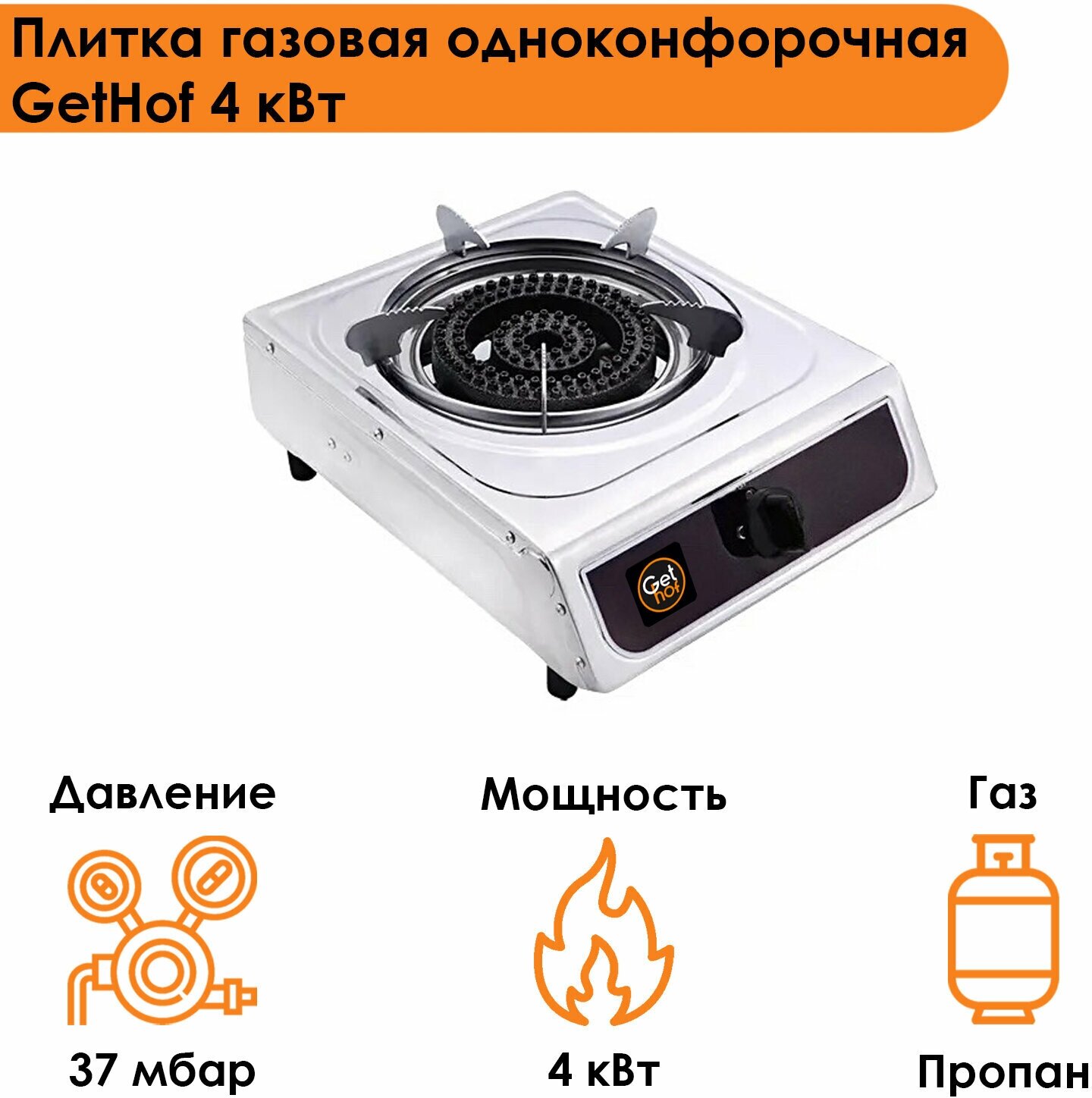 Плитка газовая настольная одноконфорочная GetHof 4 кВт GT-4P (пропан) интересное: