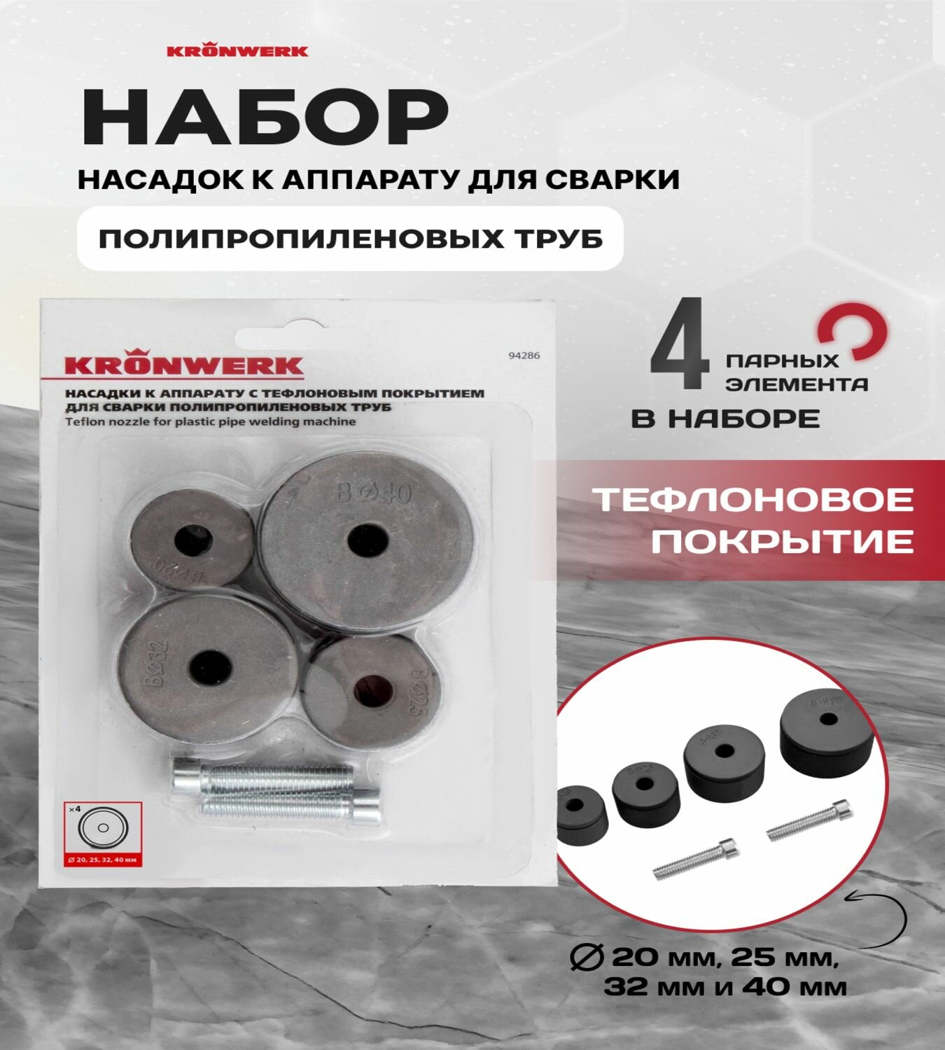KRONWERK Насадки с тефлоновым покрытием к аппарату для сварки полипропиленовых труб 20; 25; 32; 40 мм Kronwerk 94286