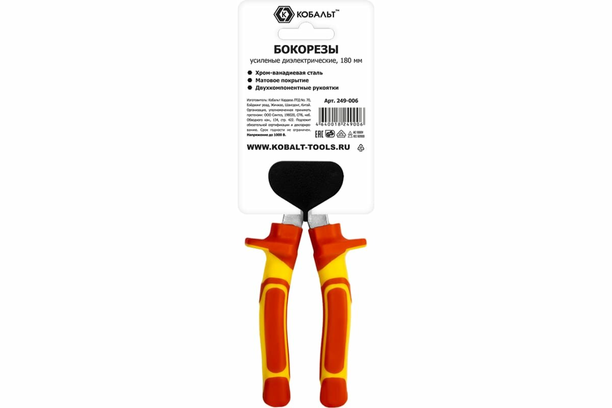 Бокорезы (диэлектрические, 180 мм, подвес) кобальт 249-006