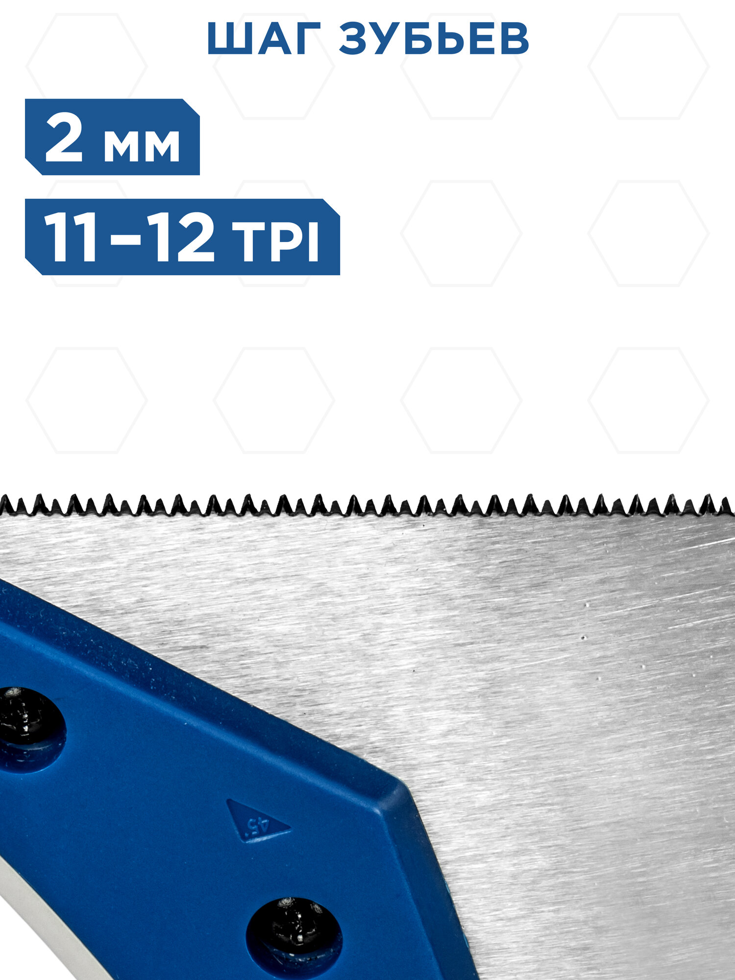 Ножовка по дереву кобальт 350 мм, шаг 2 мм/12 TPI, 3D-заточка