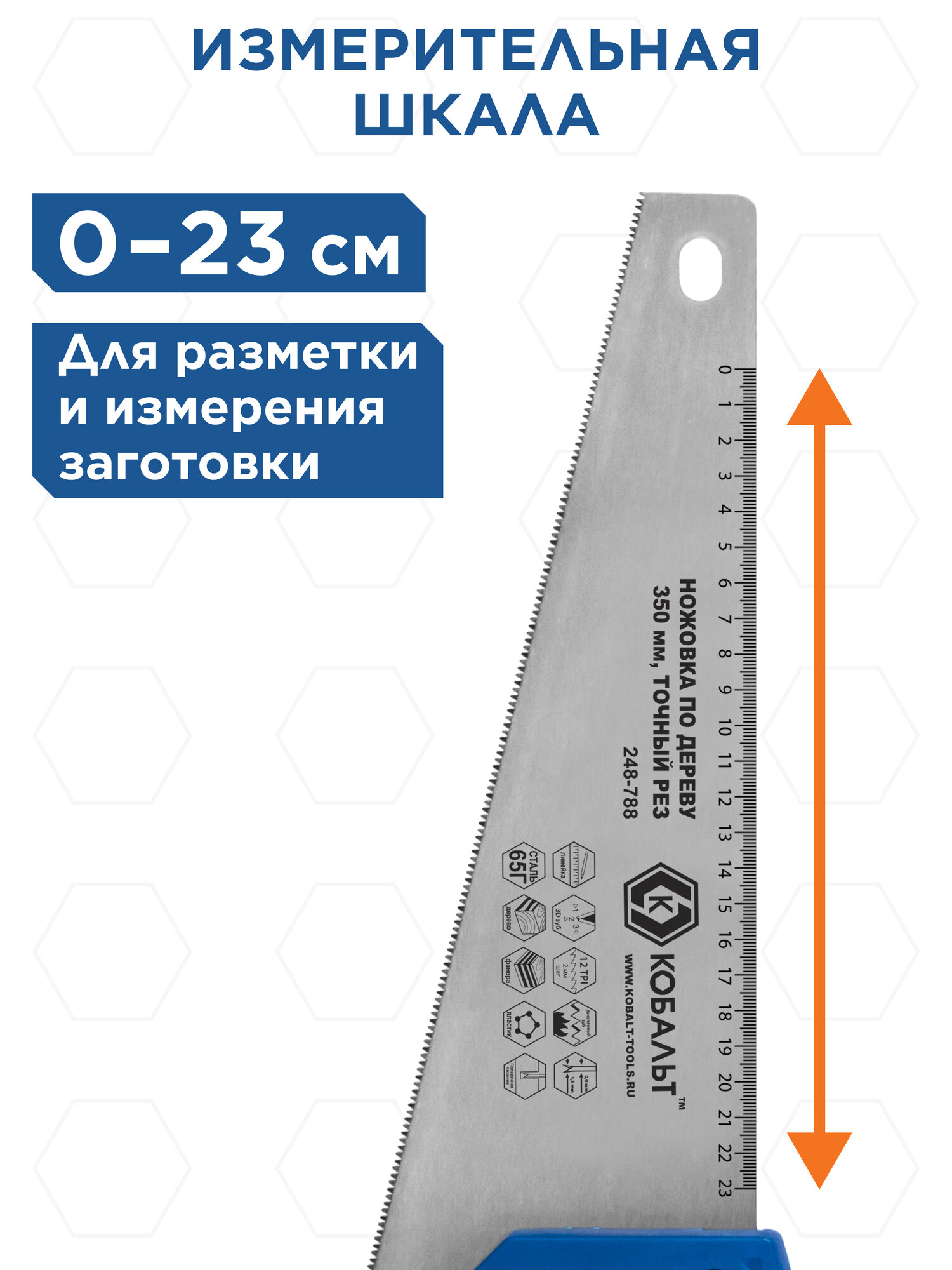 Кобальт Ножовка по дереву Кобальт 350 мм, шаг 2 мм/ 12 Tpi, закаленный зуб, 3D-заточка, 248-788 .
