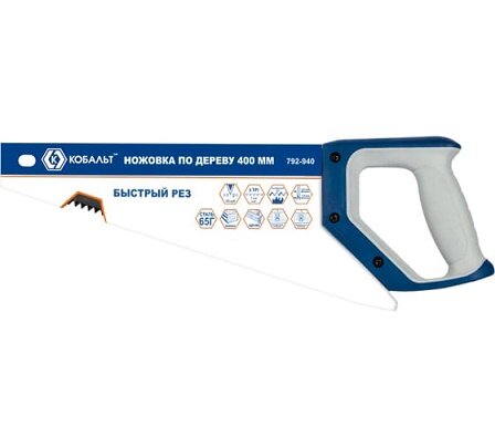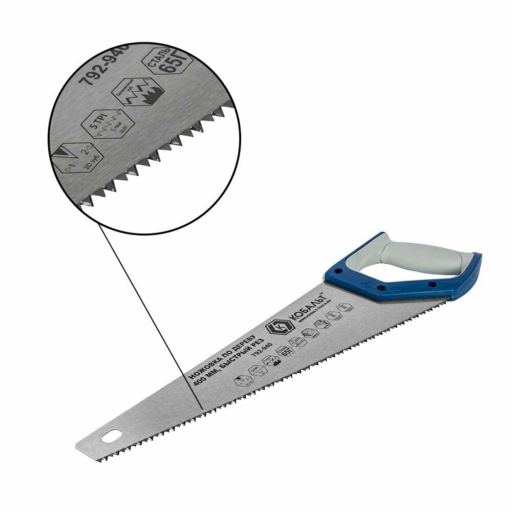 Ножовка по дереву кобальт 400 мм шаг 5.0 мм 5 TPI