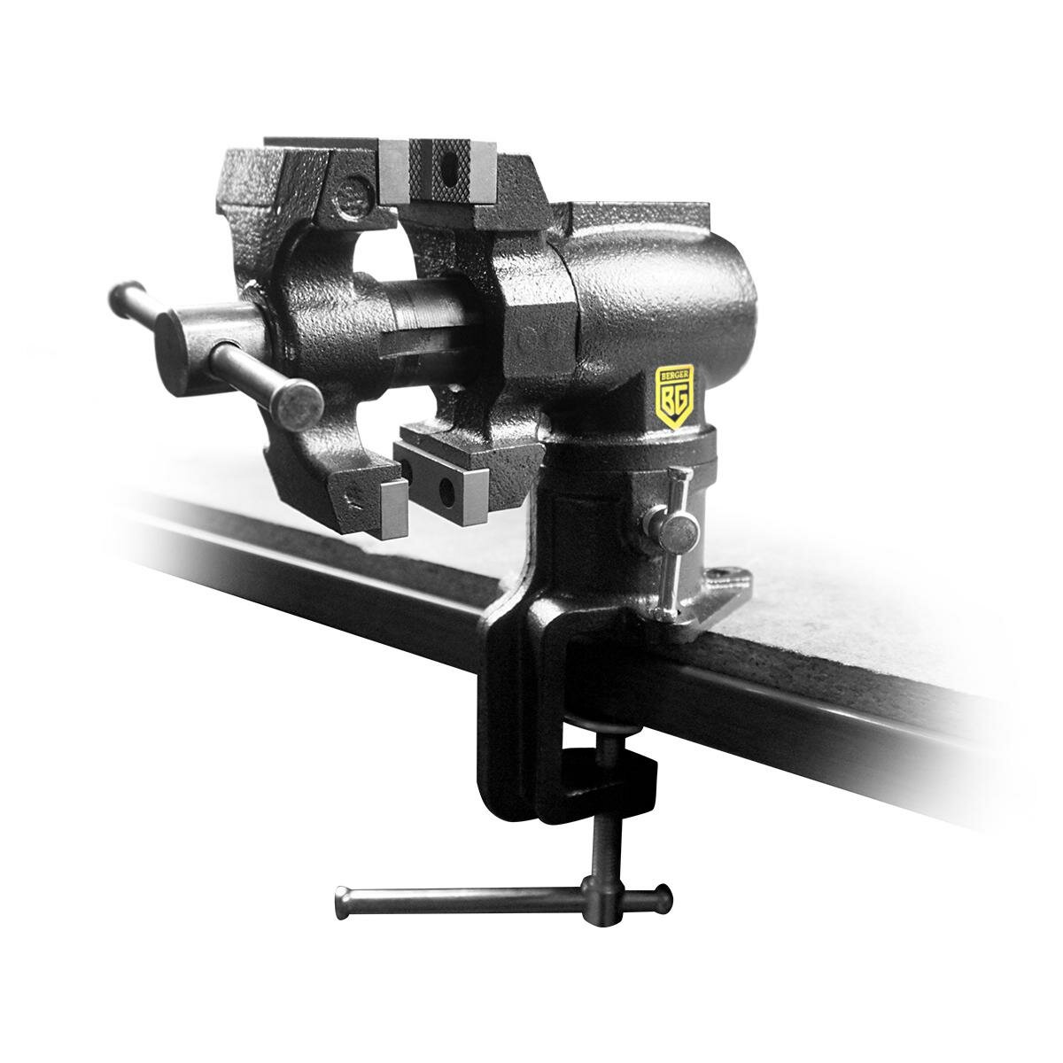Тиски чугунные поворотные в 2-х плоскостях с наковальней и струбциной 63 мм Berger BG1341