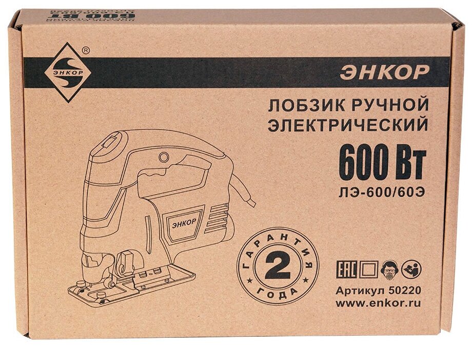 Лобзик электрический 60/ 600Вт энкор ЛЭ-600/60Э коробка интересное: