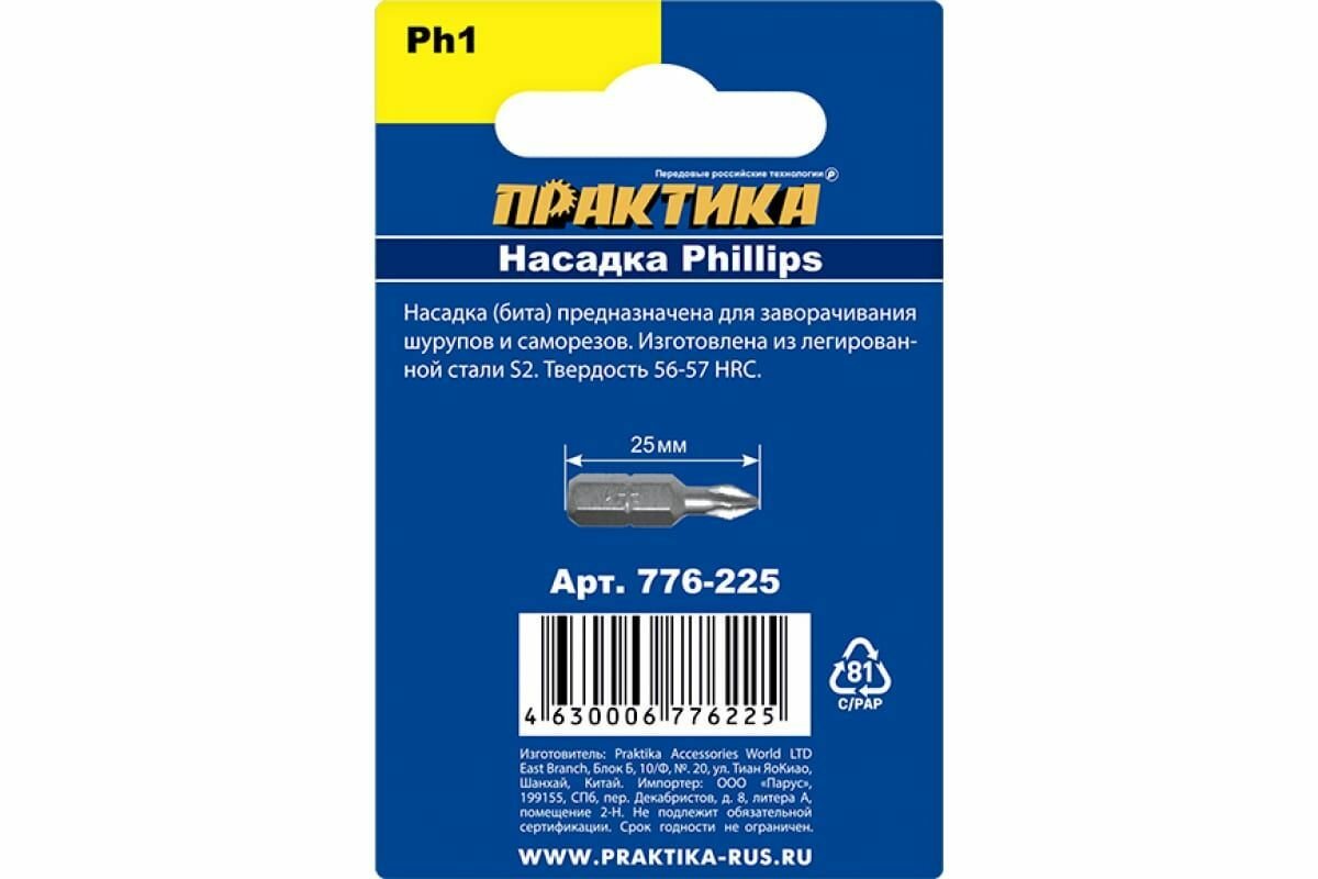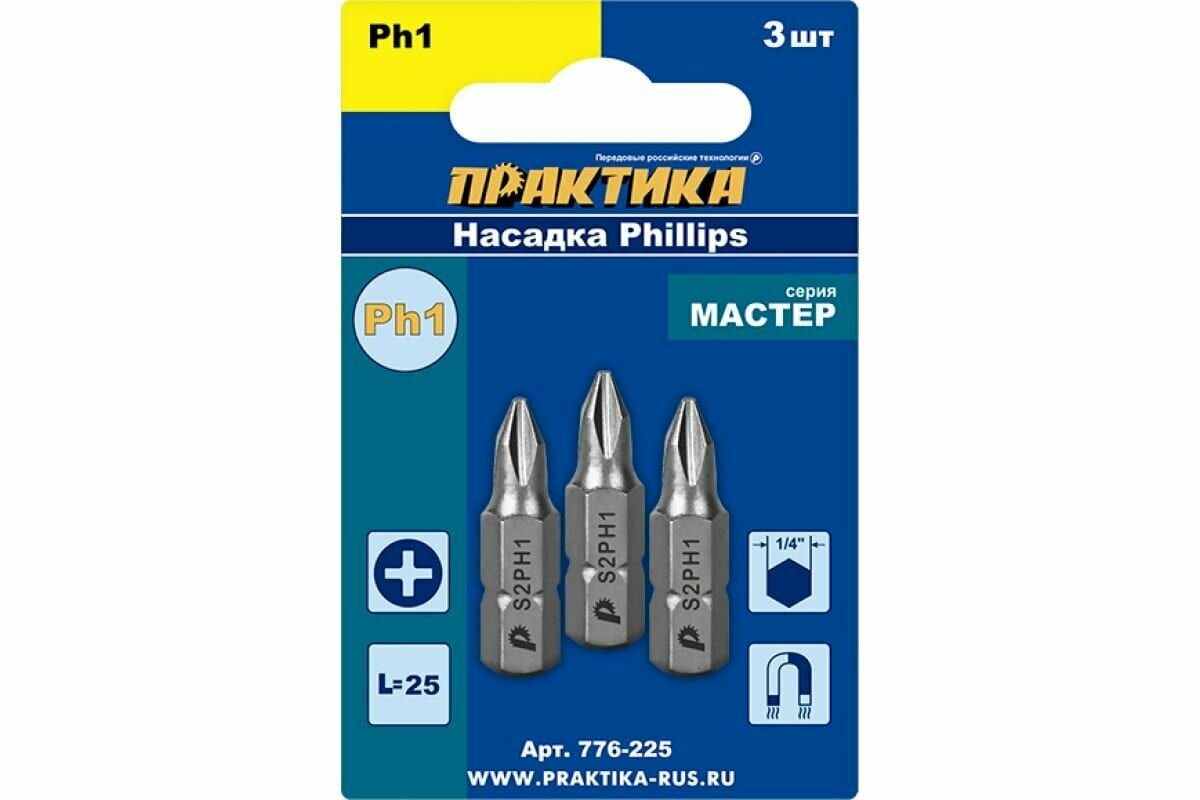 Бита отверточная ПРАКТИКА "Мастер" PH-1 х 25мм (3шт), блистер 776-225 интересное: