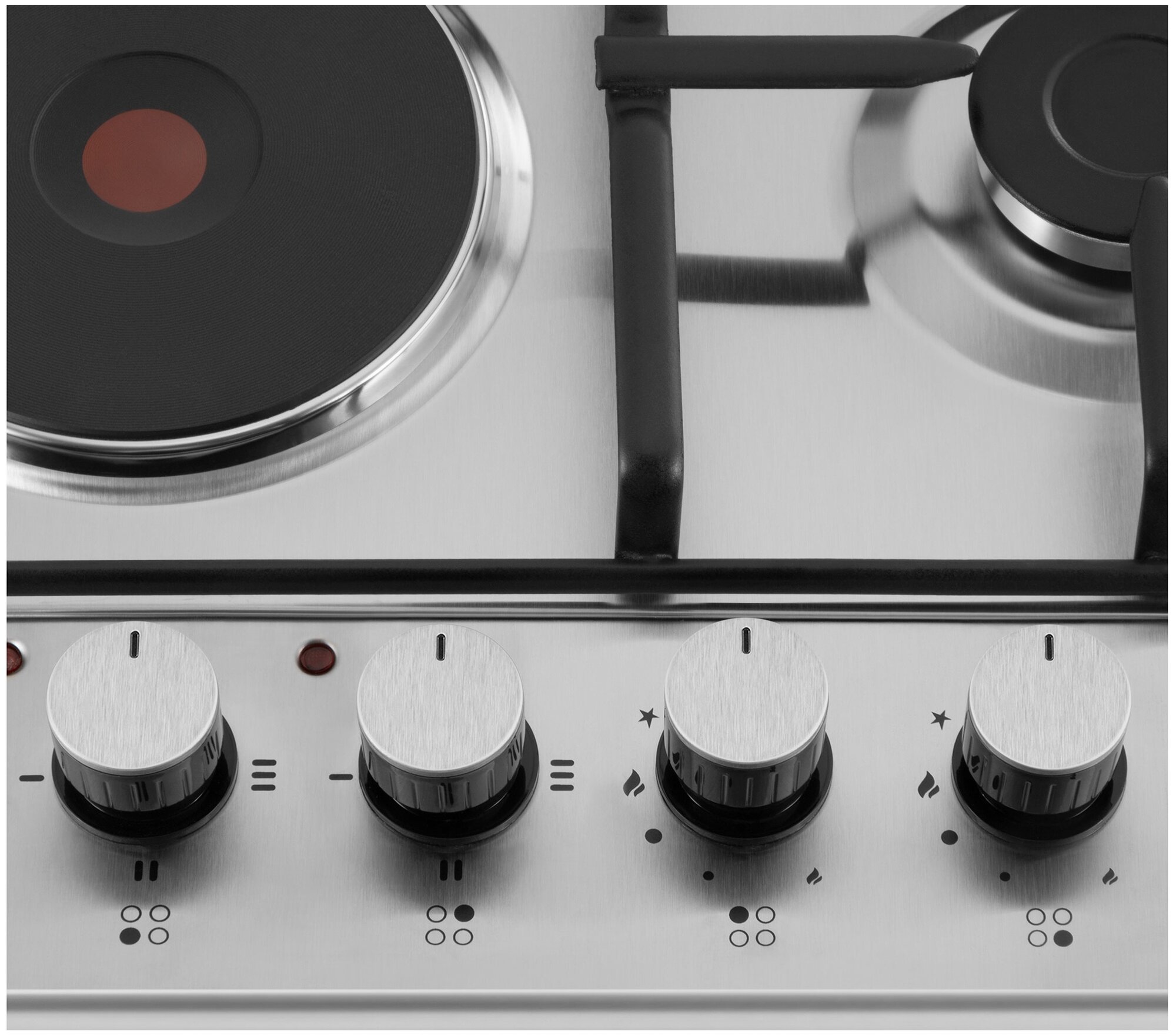 Купить Электрическая варочная панель MAUNFELD EEHS.64.5ES/KG, электрическая с чугунными конфорками/газовая, независимая, нержавеющая сталь