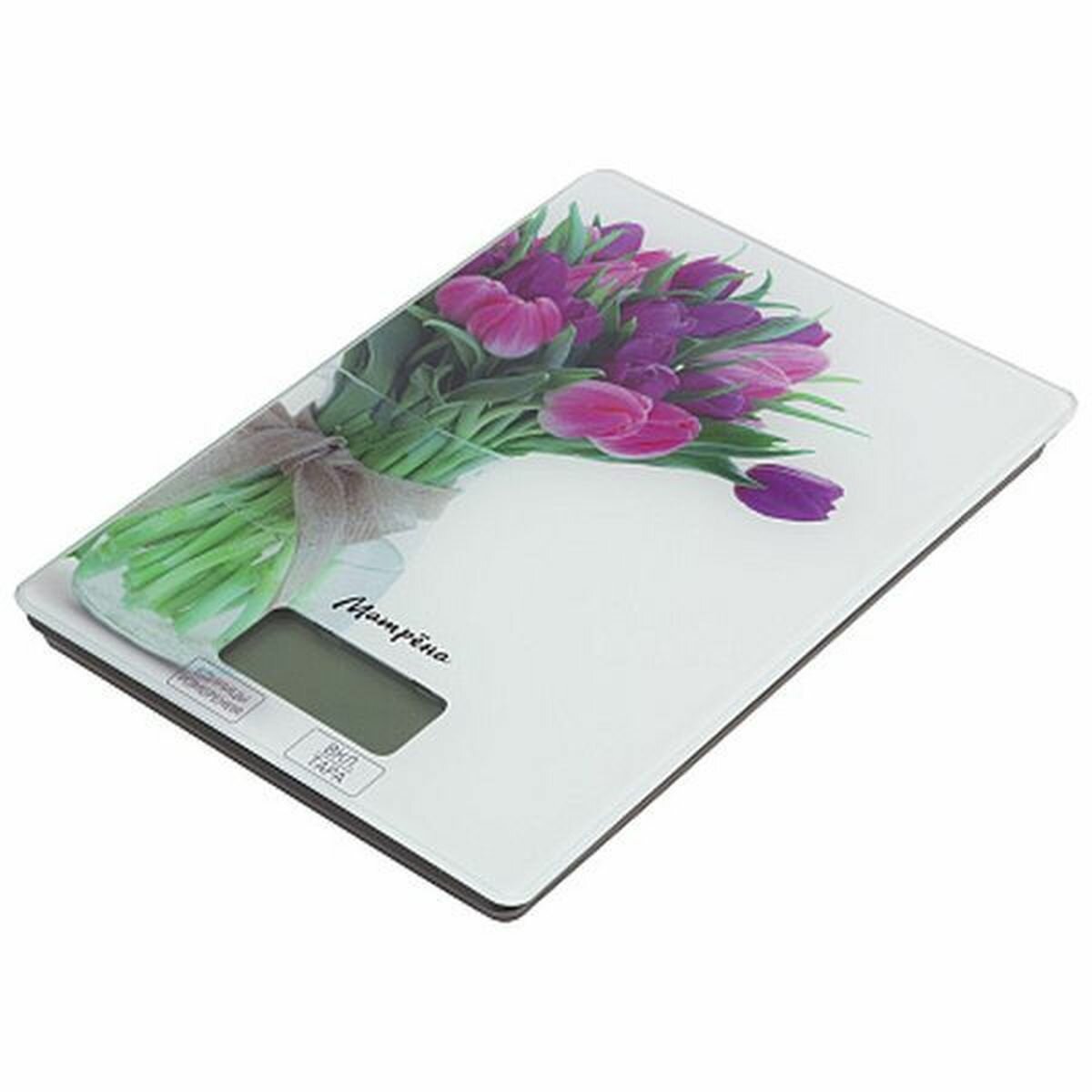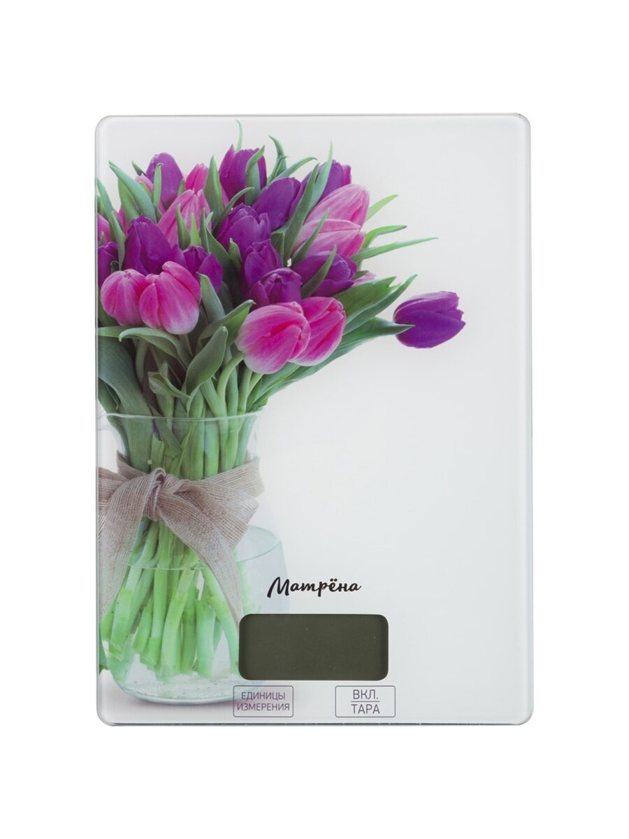 Кухонные весы Матрёна МА-037 тюльпаны белый/фиолетовый