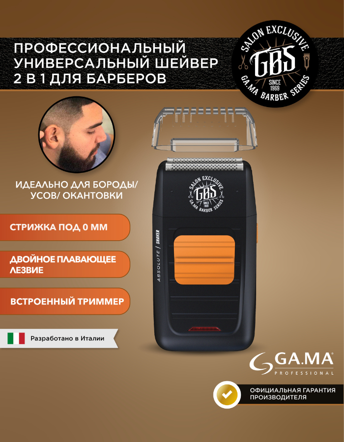 Электробритва GA.MA GBS ABSOLUTE SHAVER, Li-Ion, мощность 4 Вт, чёрная (для барберов)