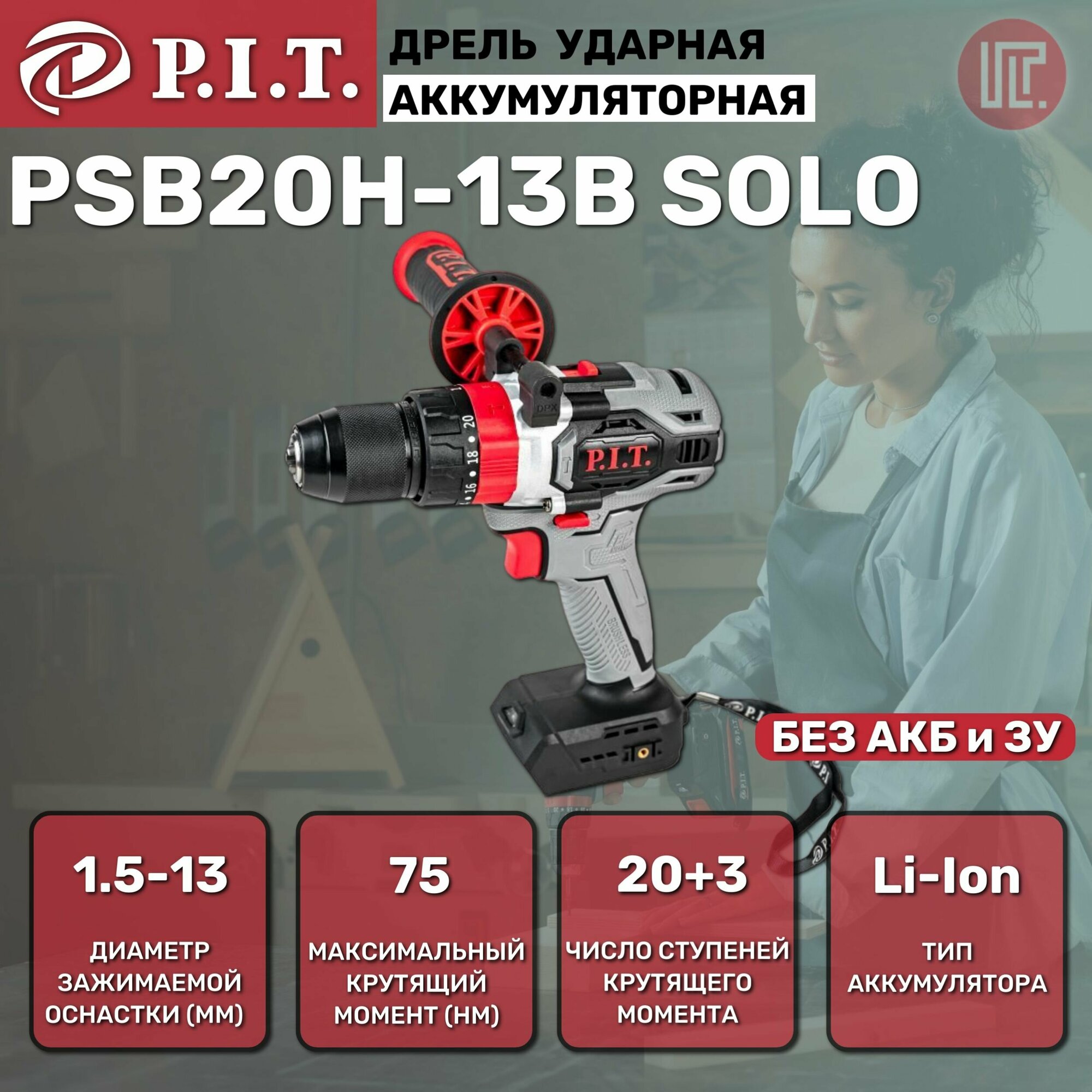 Дрель шуруповерт PSB20H-13B PIT SOLO аккумуляторная ударная 75Нм под АКБ 20В ONEPOWER бесщеточный