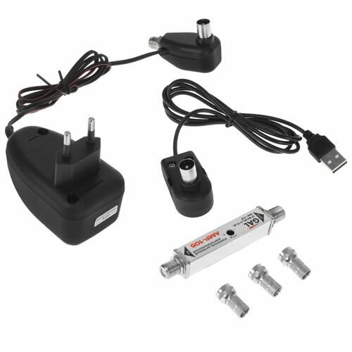 Усилитель ТВ сигнала GAL AMP-105, широкополосный, в разрыв антенного кабеля, активный