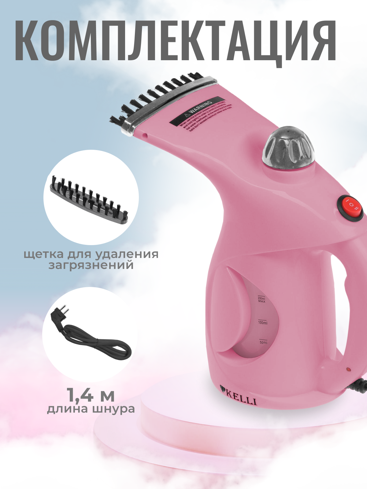 Отпариватель KELLI KL-316 1650Вт 0,25л розовый (L)