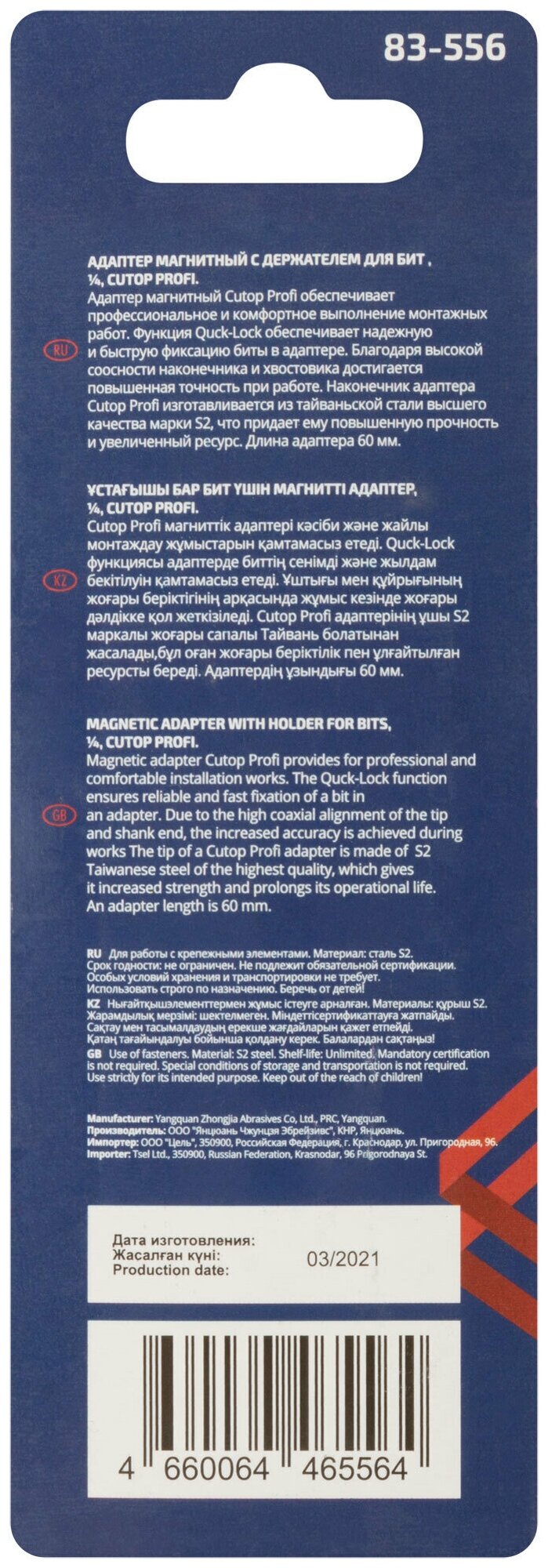 Адаптер магнитный для бит с держателем 1/4" Profi CUTOP 83-556