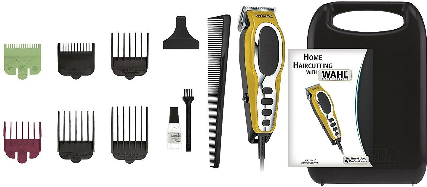 Машинка для стрижки Wahl Close cut Pro, 10 Вт, 6 насадок, желтый интересное: