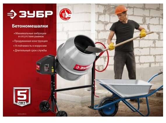 ЗУБР 160 л, 700 Вт, бетоносмеситель с чугунным венцом (БМЧ-160) интересное: