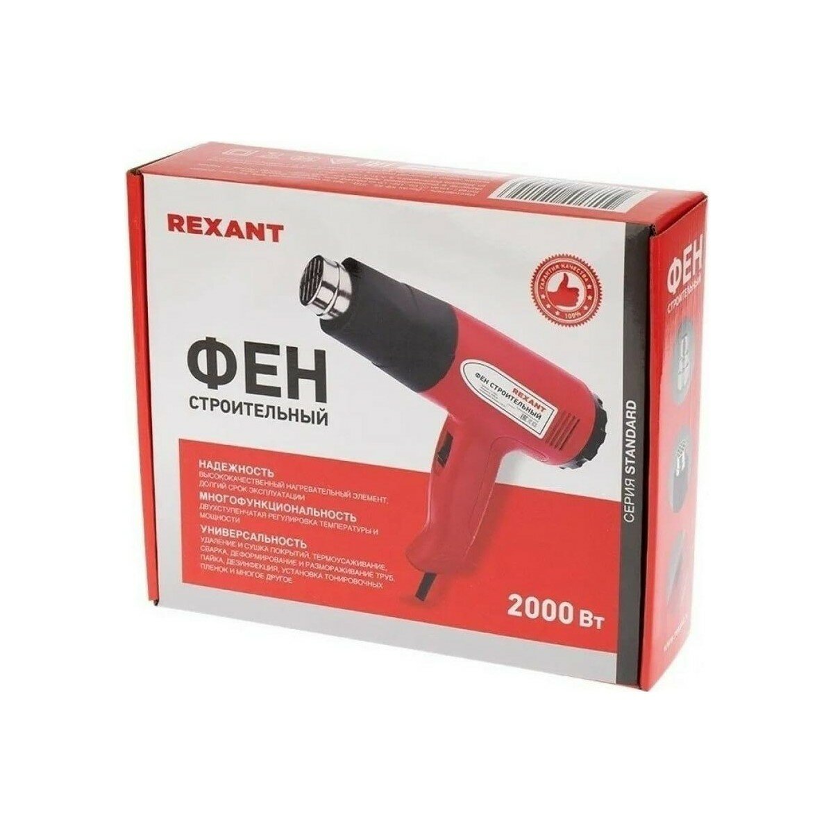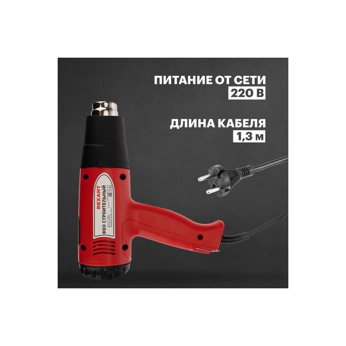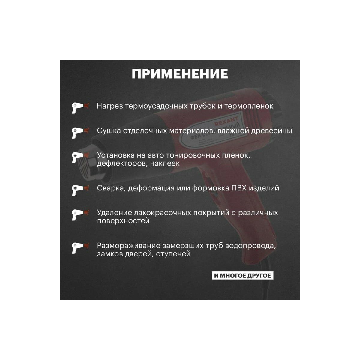 Фен строительный REXANT, 230 В/1500 Вт "STANDARD" с терморегулятором и дисплеем
