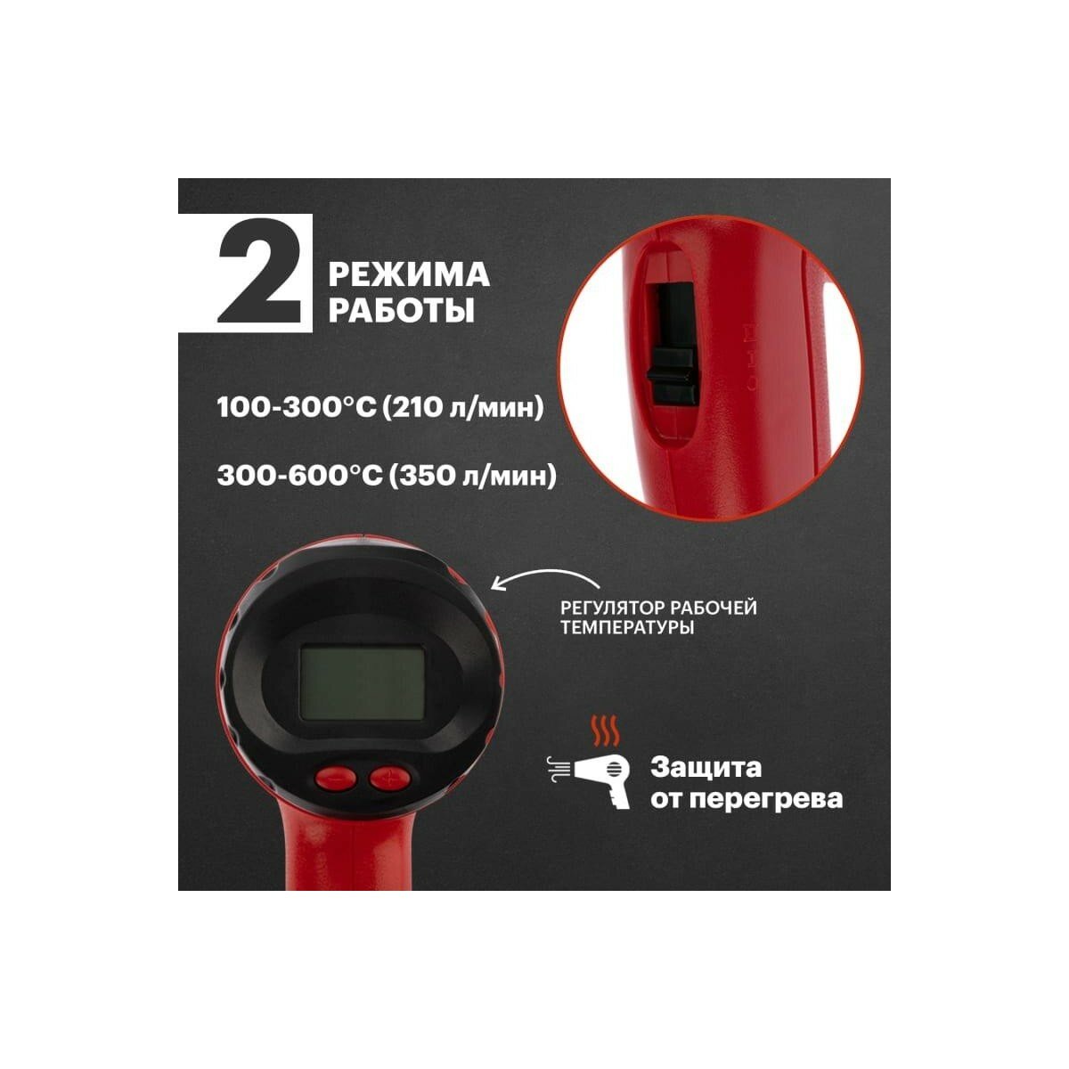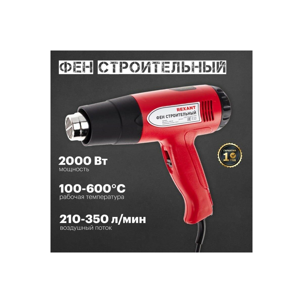 Фен строительный 2000 Вт с терморегулятором и дисплеем REXANT