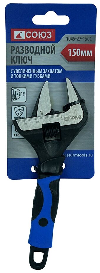 Ключ разводной СОЮЗ 150мм, усиленные тонкие губки, обрезиненная рукоятка