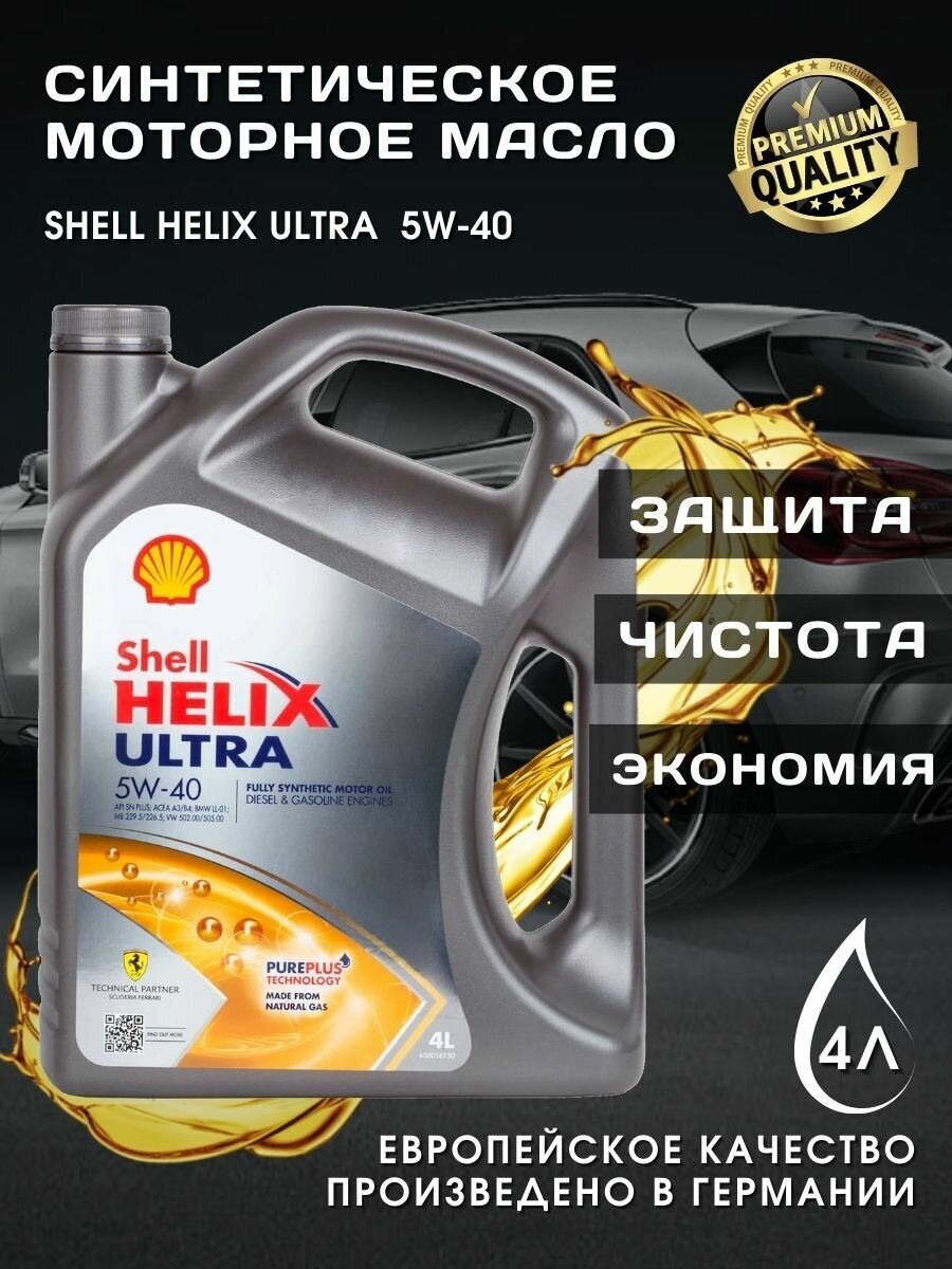 Синтетическое моторное масло SHELL Helix Ultra 5W-40, 4 л (Германия)