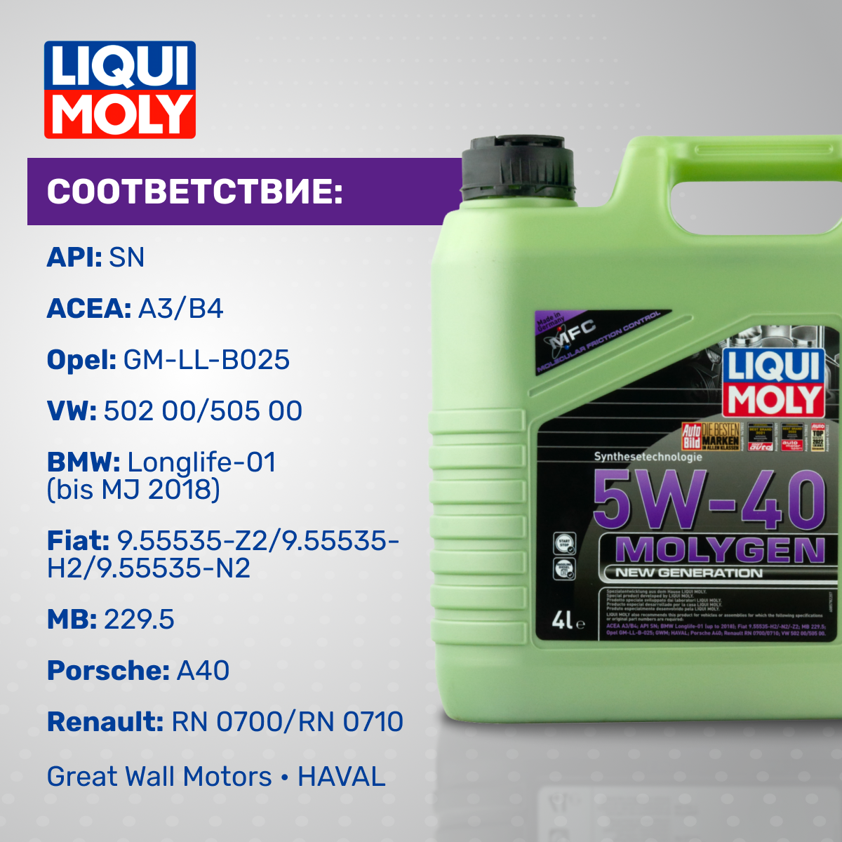 , Замена 9054 5W-40 Sn/Сf Molygen New Generation 4Л (Нс-Синт.мотор.масло) Liqui moly арт. 8578