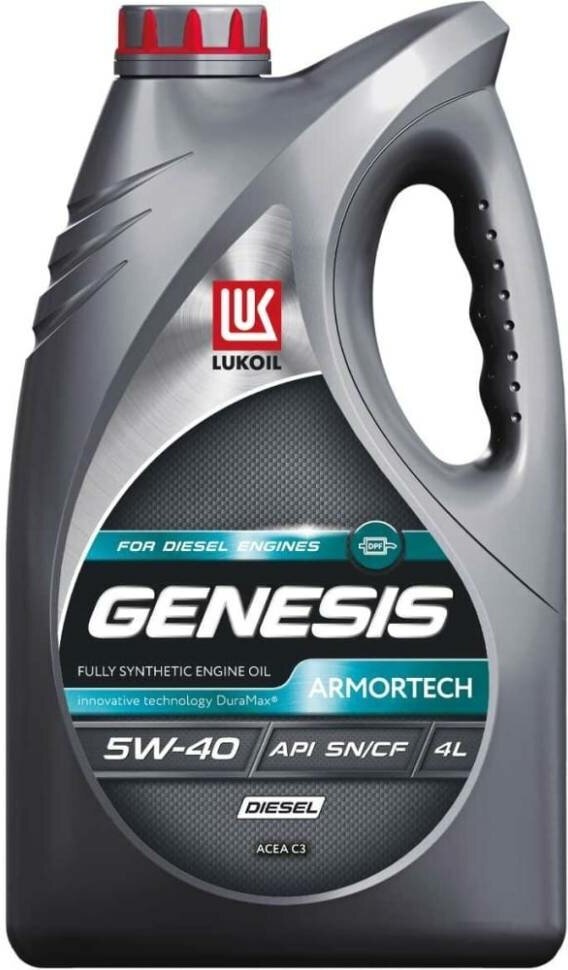 Масло моторное Лукойл Genesis Armortech Diesel 5w40, синтетическое, API SN/CF, ACEA C3, для дизельного двигателя, 4л, арт. 3149129