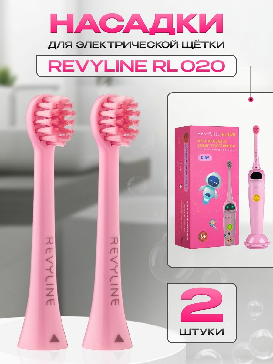 Насадки Revyline RL 020 розовый цвет, 2 шт, к детской зубной электрической щетке (Ревилайн)