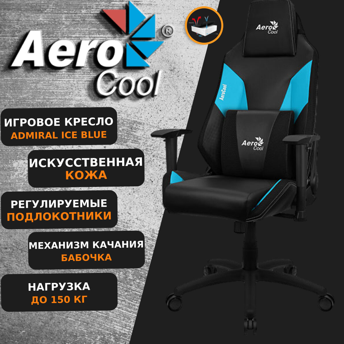 СохранитьКомпьютерное кресло AeroCool Admiral Ice Blue интересное: