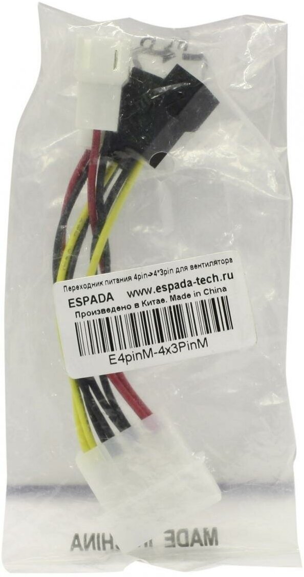Espada Переходник питания для вентилятора PATA HDD->4х3-pin Espada E4pinM-4x3PinM (0.10м) (oem)