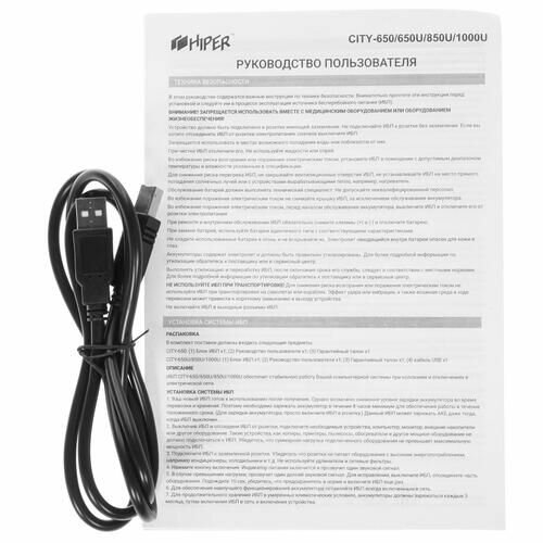 Источник бесперебойного питания HIPER CITY-850U line-interactive, 850ВА(480Вт), 2 розетки Schuko, USB-порт, чёрный