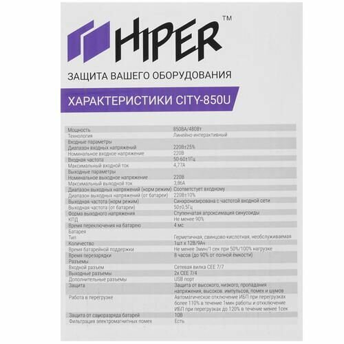 ИБП HIPER CITY-850U CITY-850U
