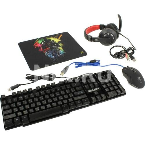Клавиатура и мышь Defender Singularity MKP-118 игровой комплект с подсветкой + коврик + гарнитура - 1.5м графит